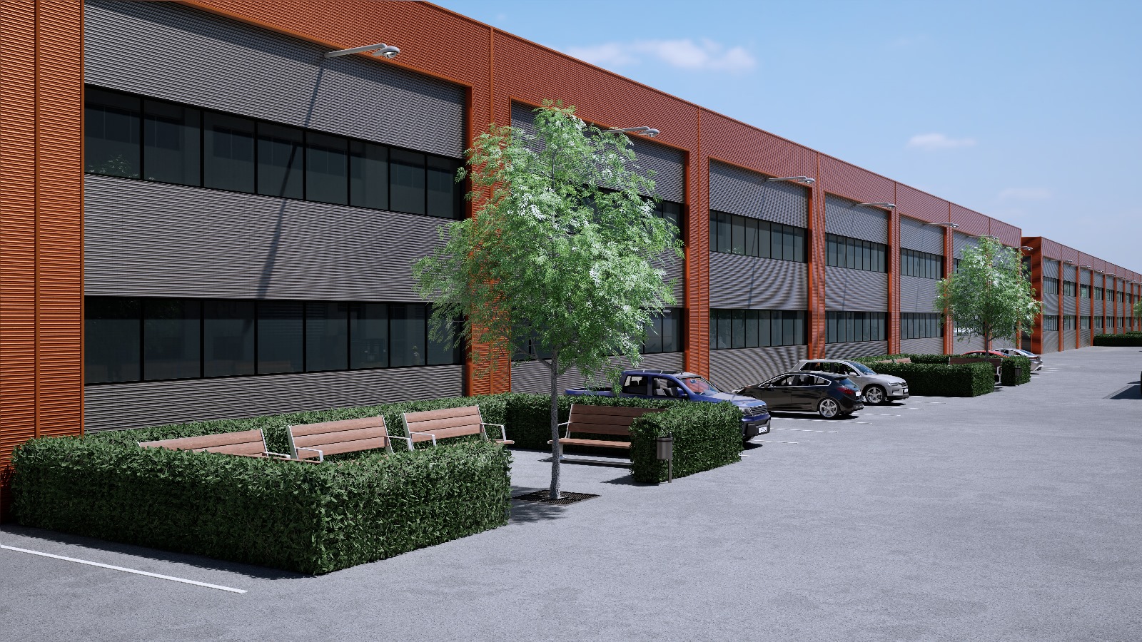 Yapının yüksekliği 9.00 metre olarak planlanmıştır, bu da geniş hacimli üretim tesislerine ve depo alanlarına ihtiyaç duyan firmalar için ideal bir ortam sunmaktadır.